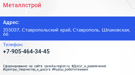 Металлстрой по адресу 355037, Ставропольский край, Ставрополь, Шпаковская, 66 в дальнейшем Организация, размещена в следующих категориях: