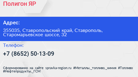 Полигон ЯР по адресу 355035, Ставропольский край, Ставрополь, Старомарьевское шоссе, 32 в дальнейшем Организация, размещена в следующих категориях: