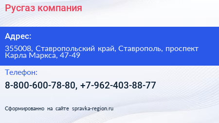 Русгаз, компания по адресу 355008, Ставропольский край, Ставрополь, проспект Карла Маркса, 47-49 в дальнейшем Организация, размещена в следующих категориях: