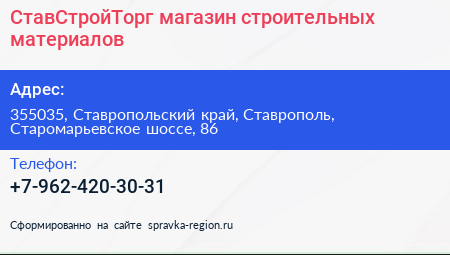 СтавСтройТорг, магазин строительных материалов по адресу 355035, Ставропольский край, Ставрополь, Старомарьевское шоссе, 86 в дальнейшем Организация, размещена в следующих категориях: