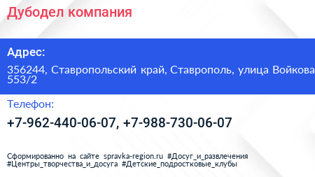 Дубодел, компания по адресу 356244, Ставропольский край, Ставрополь, улица Войкова, 553/2 в дальнейшем Организация, размещена в следующих категориях: