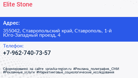 Elite Stone по адресу 355042, Ставропольский край, Ставрополь, 1-й Юго-Западный проезд, 4 в дальнейшем Организация, размещена в следующих категориях: