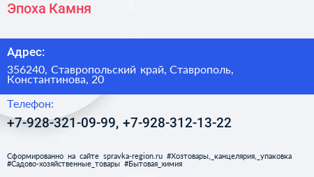 Эпоха Камня по адресу 356240, Ставропольский край, Ставрополь, Константинова, 20 в дальнейшем Организация, размещена в следующих категориях: