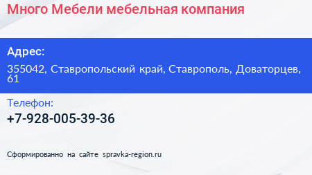 Много Мебели, мебельная компания по адресу 355042, Ставропольский край, Ставрополь, Доваторцев, 61 в дальнейшем Организация, размещена в следующих категориях: