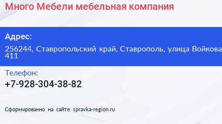 Много Мебели, мебельная компания по адресу 256244, Ставропольский край, Ставрополь, улица Войкова, 411 в дальнейшем Организация, размещена в следующих категориях: