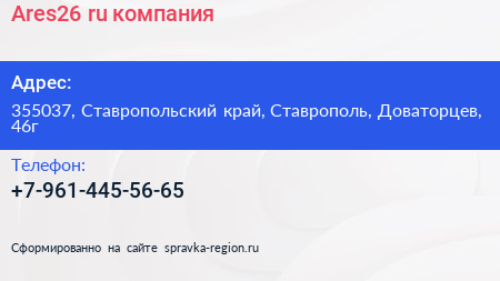 Ares26.ru, компания по адресу 355037, Ставропольский край, Ставрополь, Доваторцев, 46г в дальнейшем Организация, размещена в следующих категориях: