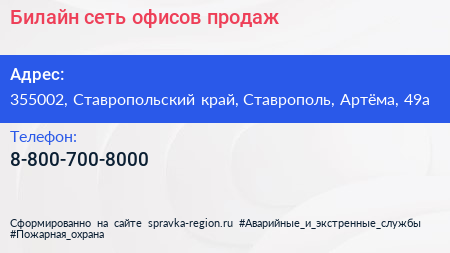 Билайн, сеть офисов продаж по адресу 355002, Ставропольский край, Ставрополь, Артёма, 49а в дальнейшем Организация, размещена в следующих категориях: