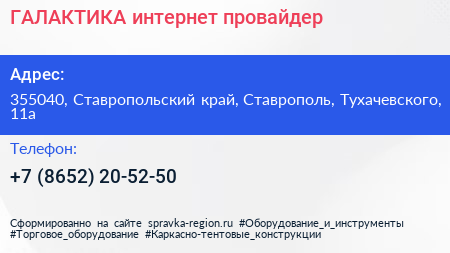 ГАЛАКТИКА, интернет-провайдер по адресу 355040, Ставропольский край, Ставрополь, Тухачевского, 11а в дальнейшем Организация, размещена в следующих категориях: