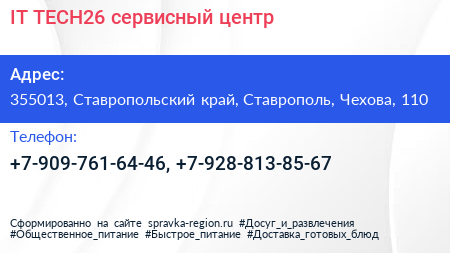 IT-TECH26, сервисный центр по адресу 355013, Ставропольский край, Ставрополь, Чехова, 110 в дальнейшем Организация, размещена в следующих категориях: