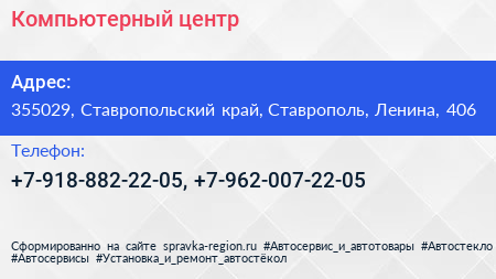 Компьютерный центр по адресу 355029, Ставропольский край, Ставрополь, Ленина, 406 в дальнейшем Организация, размещена в следующих категориях: