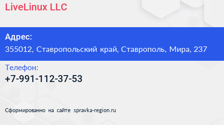 LiveLinux LLC по адресу 355012, Ставропольский край, Ставрополь, Мира, 237 в дальнейшем Организация, размещена в следующих категориях: