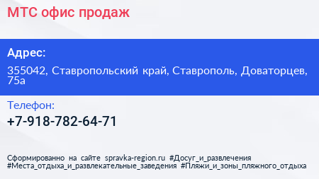 МТС, офис продаж по адресу 355042, Ставропольский край, Ставрополь, Доваторцев, 75а в дальнейшем Организация, размещена в следующих категориях: