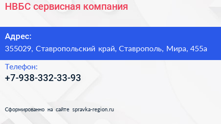 НВБС, сервисная компания по адресу 355029, Ставропольский край, Ставрополь, Мира, 455а в дальнейшем Организация, размещена в следующих категориях: