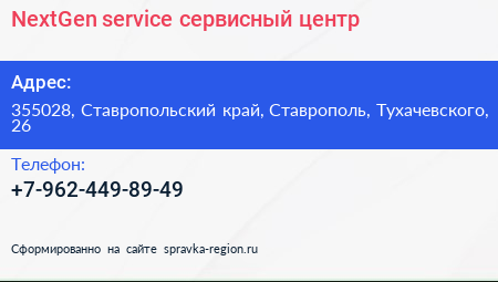 NextGen service, сервисный центр по адресу 355028, Ставропольский край, Ставрополь, Тухачевского, 26 в дальнейшем Организация, размещена в следующих категориях: