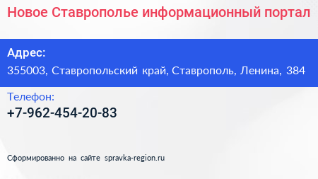 Новое Ставрополье, информационный портал по адресу 355003, Ставропольский край, Ставрополь, Ленина, 384 в дальнейшем Организация, размещена в следующих категориях: