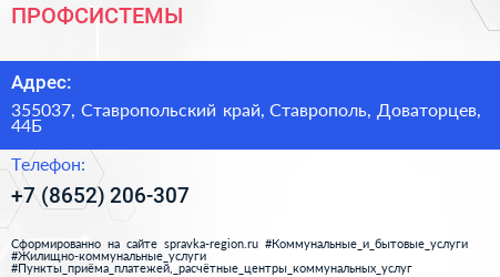 ПРОФСИСТЕМЫ по адресу 355037, Ставропольский край, Ставрополь, Доваторцев, 44Б в дальнейшем Организация, размещена в следующих категориях:
