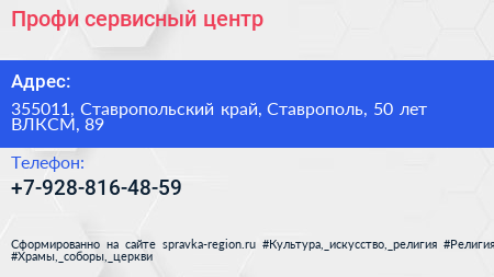 Профи, сервисный центр по адресу 355011, Ставропольский край, Ставрополь, 50 лет ВЛКСМ, 89 в дальнейшем Организация, размещена в следующих категориях: