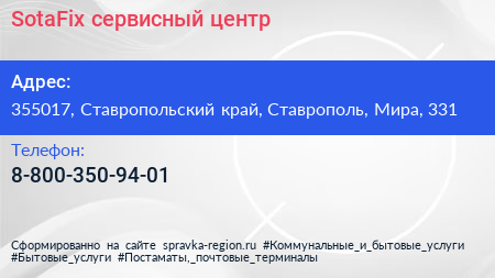 SotaFix, сервисный центр по адресу 355017, Ставропольский край, Ставрополь, Мира, 331 в дальнейшем Организация, размещена в следующих категориях: