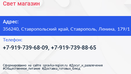 Свет, магазин по адресу 356240, Ставропольский край, Ставрополь, Ленина, 179/1 в дальнейшем Организация, размещена в следующих категориях: