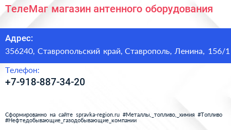 ТелеМаг, магазин антенного оборудования по адресу 356240, Ставропольский край, Ставрополь, Ленина, 156/1 в дальнейшем Организация, размещена в следующих категориях: