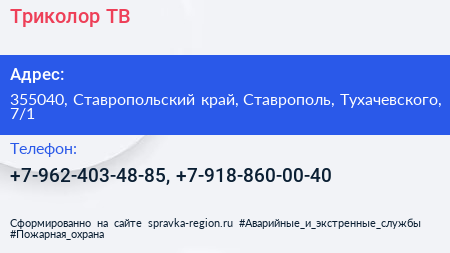 Триколор ТВ по адресу 355040, Ставропольский край, Ставрополь, Тухачевского, 7/1 в дальнейшем Организация, размещена в следующих категориях: