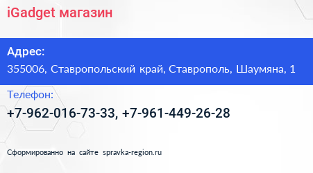 iGadget, магазин по адресу 355006, Ставропольский край, Ставрополь, Шаумяна, 1 в дальнейшем Организация, размещена в следующих категориях: