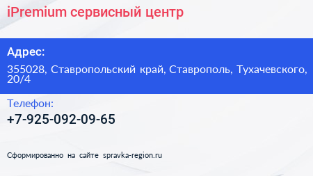 iPremium, сервисный центр по адресу 355028, Ставропольский край, Ставрополь, Тухачевского, 20/4 в дальнейшем Организация, размещена в следующих категориях:
