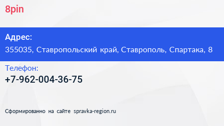 8pin по адресу 355035, Ставропольский край, Ставрополь, Спартака, 8 в дальнейшем Организация, размещена в следующих категориях: