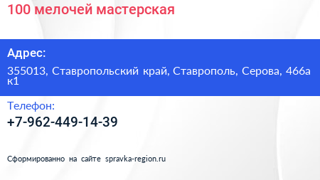 100 мелочей, мастерская по адресу 355013, Ставропольский край, Ставрополь, Серова, 466а к1 в дальнейшем Организация, размещена в следующих категориях: