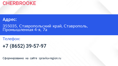 CHERBROOKE по адресу 355035, Ставропольский край, Ставрополь, Промышленная 4-я, 7а в дальнейшем Организация, размещена в следующих категориях: