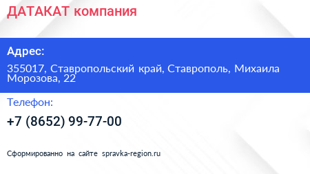 ДАТАКАТ, компания по адресу 355017, Ставропольский край, Ставрополь, Михаила Морозова, 22 в дальнейшем Организация, размещена в следующих категориях: