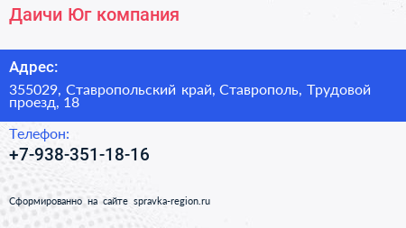 Даичи-Юг, компания по адресу 355029, Ставропольский край, Ставрополь, Трудовой проезд, 18 в дальнейшем Организация, размещена в следующих категориях:
