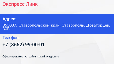 Экспресс-Линк по адресу 355037, Ставропольский край, Ставрополь, Доваторцев, 30Б в дальнейшем Организация, размещена в следующих категориях: