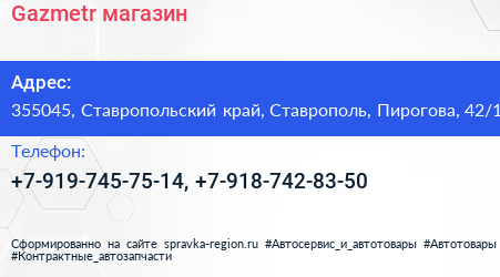 Gazmetr, магазин по адресу 355045, Ставропольский край, Ставрополь, Пирогова, 42/1 в дальнейшем Организация, размещена в следующих категориях: