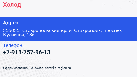 Холод+ по адресу 355035, Ставропольский край, Ставрополь, проспект Кулакова, 18в в дальнейшем Организация, размещена в следующих категориях: