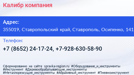 Калибр, компания по адресу 355019, Ставропольский край, Ставрополь, Осипенко, 141 в дальнейшем Организация, размещена в следующих категориях: