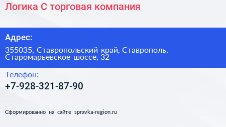 Логика-С, торговая компания по адресу 355035, Ставропольский край, Ставрополь, Старомарьевское шоссе, 32 в дальнейшем Организация, размещена в следующих категориях: