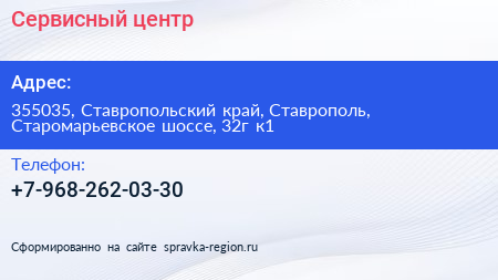 Сервисный центр по адресу 355035, Ставропольский край, Ставрополь, Старомарьевское шоссе, 32г к1 в дальнейшем Организация, размещена в следующих категориях: