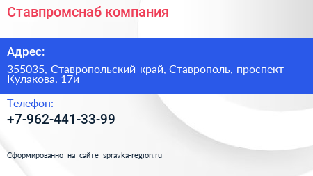 Ставпромснаб, компания по адресу 355035, Ставропольский край, Ставрополь, проспект Кулакова, 17и в дальнейшем Организация, размещена в следующих категориях: