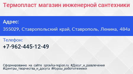 Термопласт, магазин инженерной сантехники по адресу 355029, Ставропольский край, Ставрополь, Ленина, 484а в дальнейшем Организация, размещена в следующих категориях: