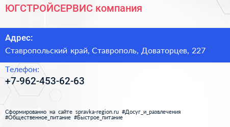 ЮГСТРОЙСЕРВИС, компания по адресу Ставропольский край, Ставрополь, Доваторцев, 227 в дальнейшем Организация, размещена в следующих категориях: