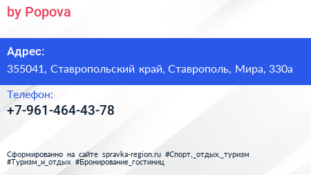 by Popova по адресу 355041, Ставропольский край, Ставрополь, Мира, 330а в дальнейшем Организация, размещена в следующих категориях: