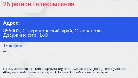 26 регион, телекомпания по адресу 355003, Ставропольский край, Ставрополь, Дзержинского, 160 в дальнейшем Организация, размещена в следующих категориях: