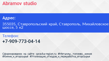 Abramov-studio по адресу 355035, Ставропольский край, Ставрополь, Михайловское шоссе, 5 к2 в дальнейшем Организация, размещена в следующих категориях: