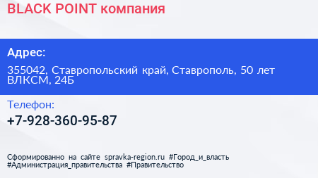 BLACK POINT, компания по адресу 355042, Ставропольский край, Ставрополь, 50 лет ВЛКСМ, 24Б в дальнейшем Организация, размещена в следующих категориях: