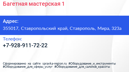 Багетная мастерская №1 по адресу 355017, Ставропольский край, Ставрополь, Мира, 323а в дальнейшем Организация, размещена в следующих категориях: