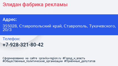 Элидан, фабрика рекламы по адресу 355028, Ставропольский край, Ставрополь, Тухачевского, 20/3 в дальнейшем Организация, размещена в следующих категориях: