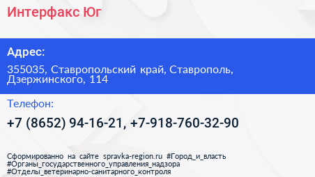 Интерфакс-Юг по адресу 355035, Ставропольский край, Ставрополь, Дзержинского, 114 в дальнейшем Организация, размещена в следующих категориях: