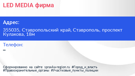 LED MEDIA, фирма по адресу 355035, Ставропольский край, Ставрополь, проспект Кулакова, 18м в дальнейшем Организация, размещена в следующих категориях:
