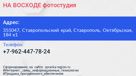 НА ВОСХОДЕ, фотостудия по адресу 355047, Ставропольский край, Ставрополь, Октябрьская, 184 к1 в дальнейшем Организация, размещена в следующих категориях: